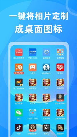 允许用户直接从设备相册中选择个人照片或下载的图片作为自定义图标素材,解决了图标库资源仍无法满足高度个性化创作欲望的问题,让任何图像都能成为桌面的视觉元素。