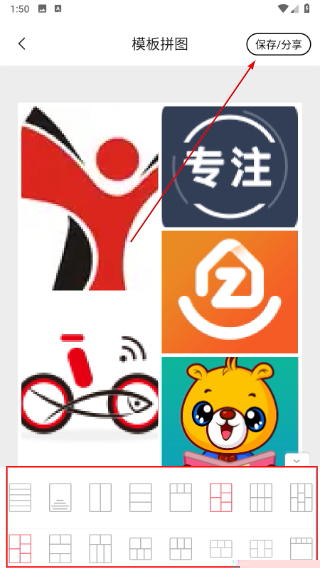 从首页进入拼图功能,勾选多张图片后选择模板,调整布局即可快速合并输出。