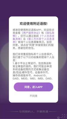 附近语叙交友是一款基于地理位置与兴趣匹配的实时语音社交应用,主打轻聊、真诚、有温度的交友理念,帮助用户在安全、自然的环境中结识身边志同道合的新朋友,通过语音互动、文字聊天和兴趣标签系统,用户能快速找到能进行深度社交的朋友,避免传统交友中的尴尬和压力,整体设计注重隐私保护和真实感,让每一次相遇都充满心意。