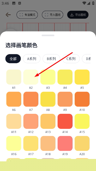 点击调色盘按钮打开颜色选择面板,挑选对应系列色号设置绘制颜色。
