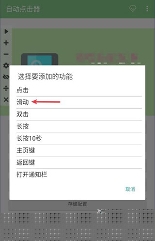 在弹出的窗口中选择滑动选项,进入滑动参数调整界面。