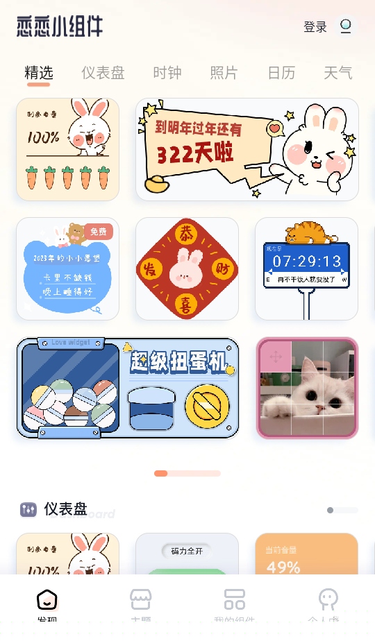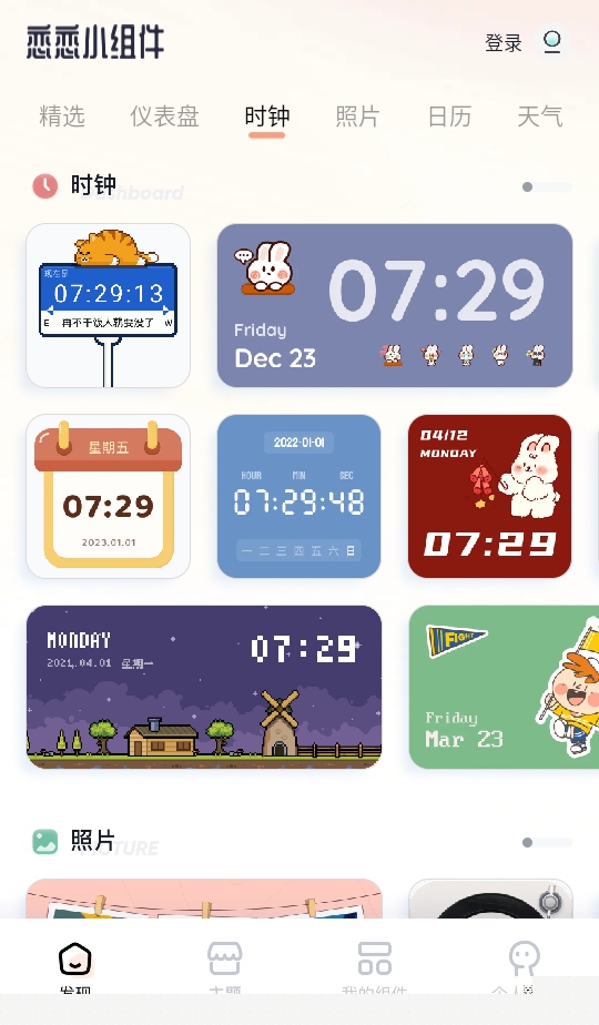 提供海量精美组件,涵盖时钟、日历、天气和纪念日等,满足不同场景需求。