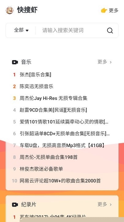 快搜虾是一款资源搜索与下载辅助软件,无需登录注册即可直接使用,保护个人隐私,通过集成多引擎全网搜索功能,快速定位各类资源并跳转至网盘下载页面,支持批量与离线下载操作,界面简洁无广告弹窗,资源按类型、热度、更新时间等维度清晰分类,满足用户对视频、文档、音频等多类型内容的获取需求,提升资源查找效率。