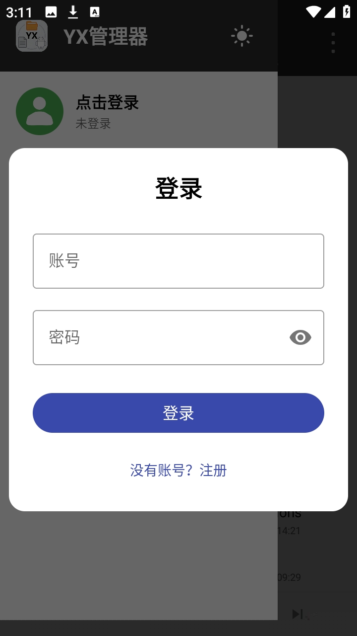 打开YX管理器后,点击左上角的三条横线图标,进入侧边栏菜单。点击上方的立即登录按钮,在登录页面选择立即注册。输入你想要的账号和密码,确认后即可完成注册,整个过程只需几步,非常快捷。