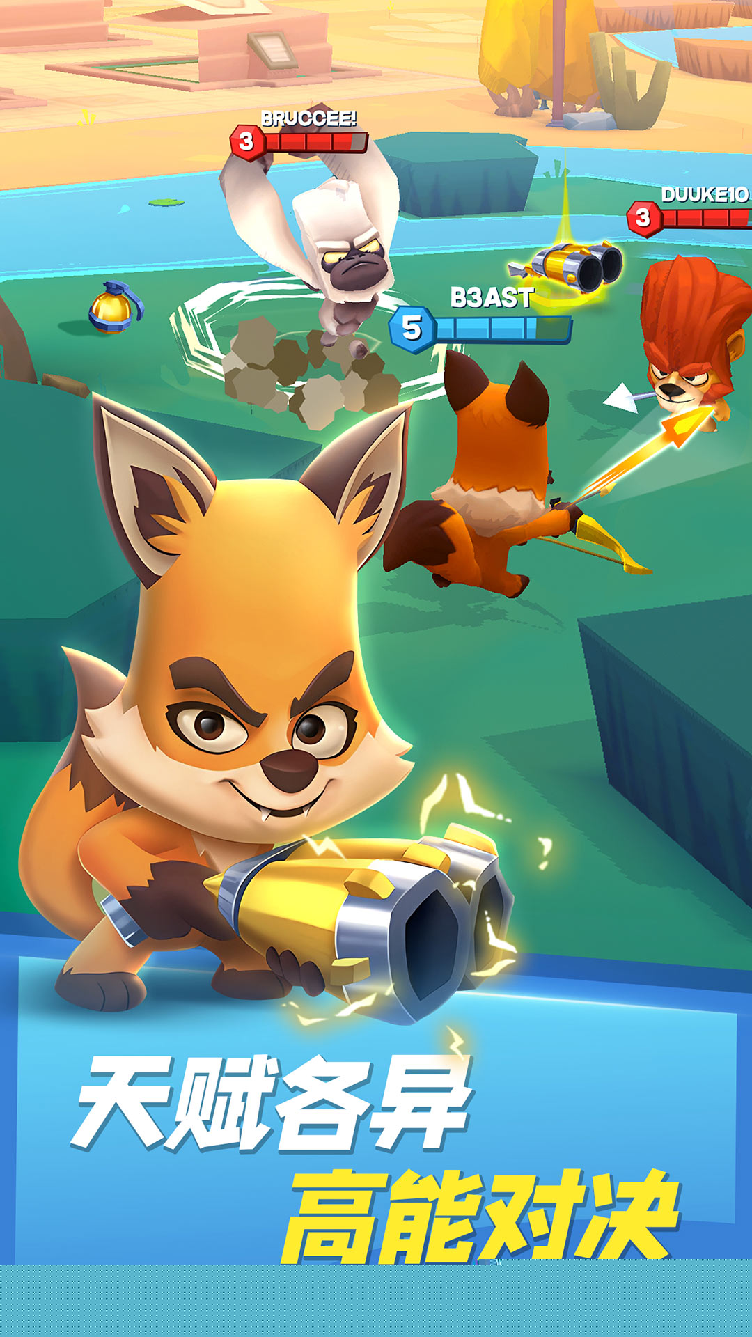 对战的核心目标是利用角色技能击败对手,最终在竞技场中存活至。每场对局开始前,需从已解锁的动物英雄中进行选择,理解其技能组合与定位是制胜第一步。部分角色擅长远程消耗,而另一些则具备强大的近身爆发或控制能力,根据团队构成或个人打法进行针对性选择至关重要。