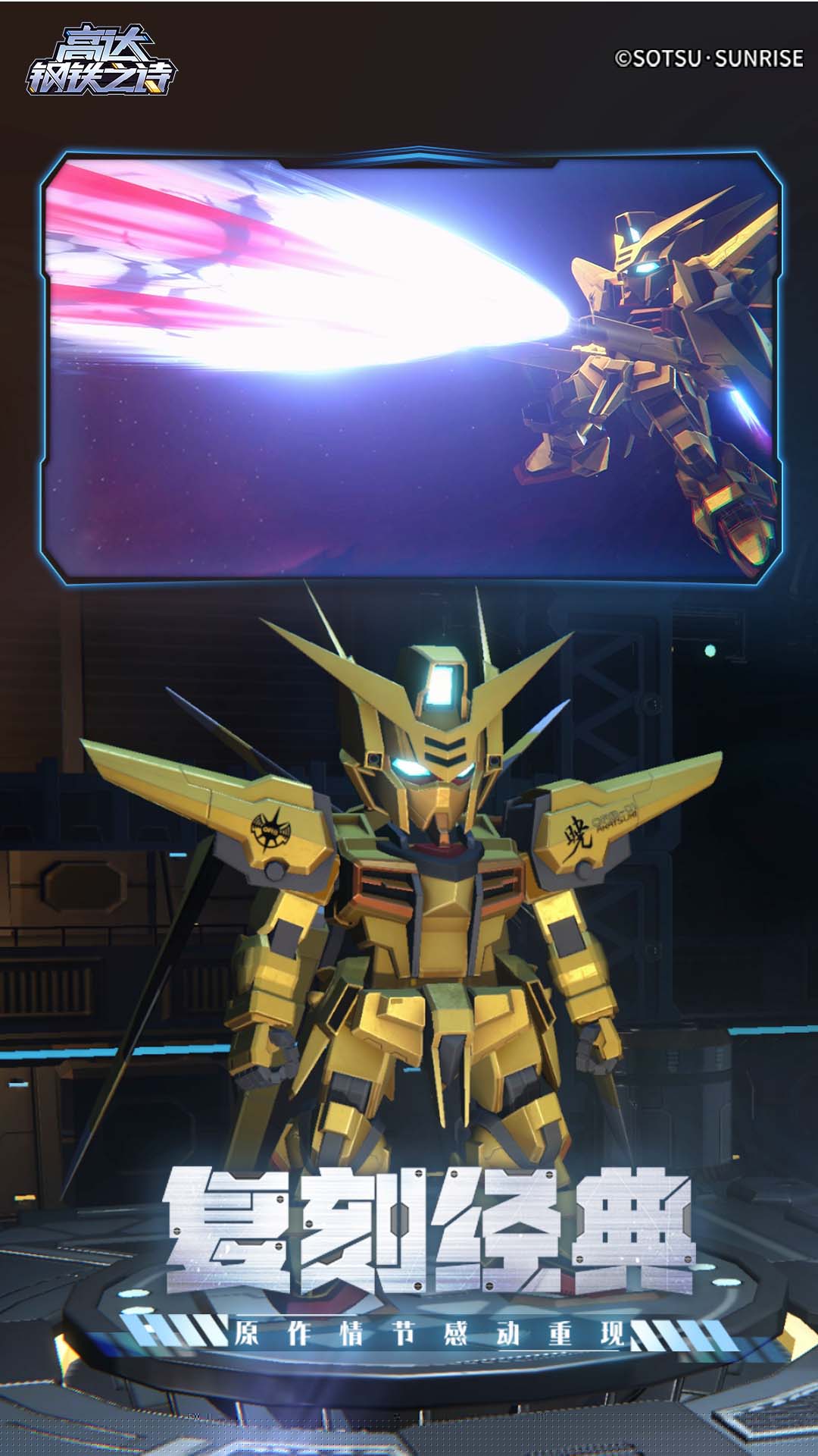高达钢铁之诗是一款由万代南梦宫正版授权,以宇宙世纪恢弘史诗为背景的3D机甲策略动作手游。作品深度还原了原作中那些耳熟能详的经典机体与传奇战役,将策略布阵、实时操控与角色养成多元融合,为构筑了一个可亲身驾驶高达、参与决定历史走向的沉浸式战场。无论是机体细节的精密刻画,还是战场氛围的磅礴渲染,都呈现原汁原味的高达宇宙。