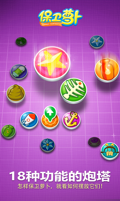 保卫萝卜是一款风靡全球的塔防策略类手游,以其清新可爱的卡通美术风格与富有深度的策略玩法而著称。作品构建了独特的萝卜世界观,需巧妙布置各类功能迥异的防御塔,抵御一波波造型奇特的怪物入侵,守护象征胜利的萝卜。其关卡设计精巧,节奏明快,兼具休闲娱乐与策略挑战,适合全年龄段体验。