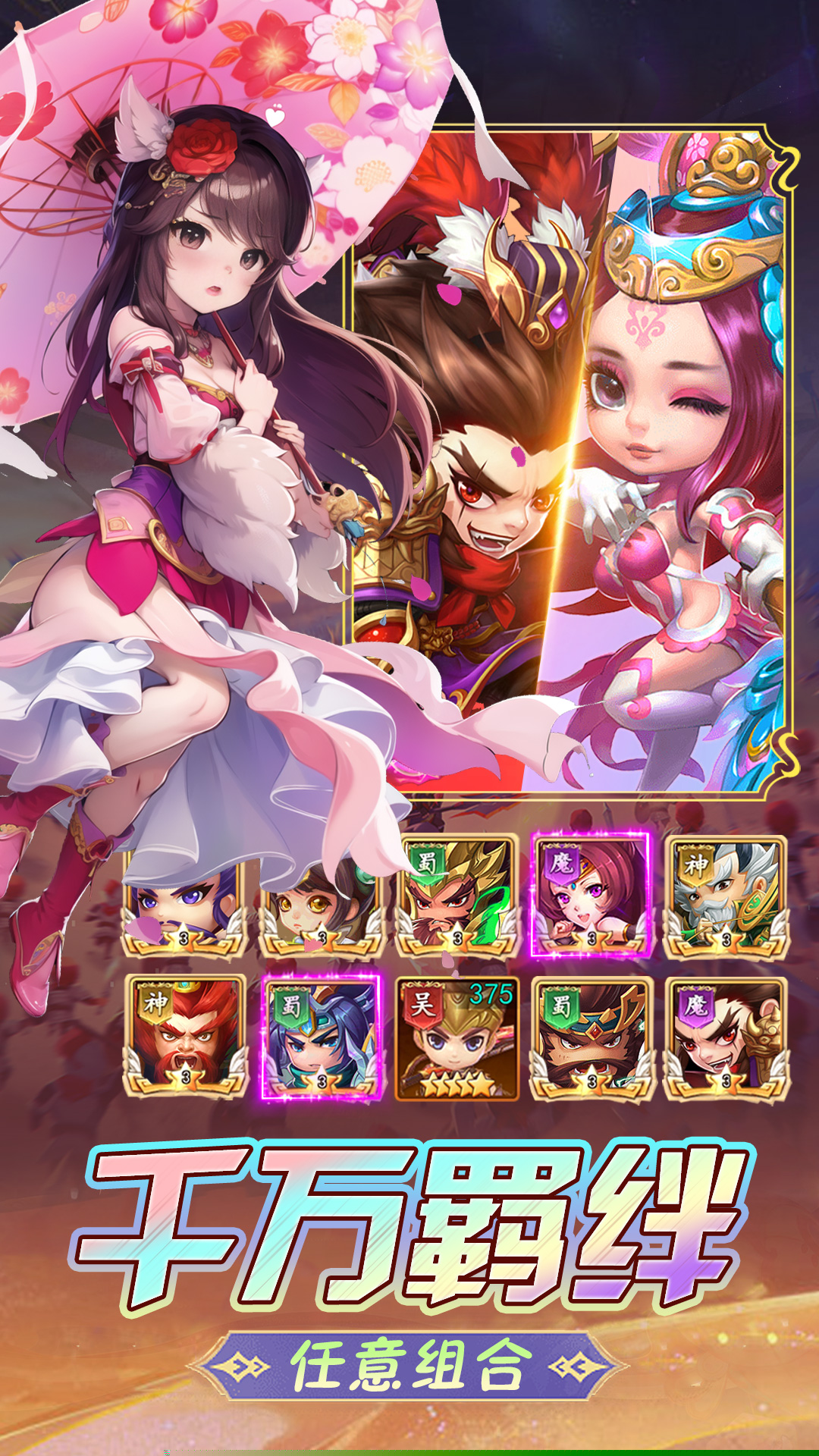 上百位武将拥有独特技能与定位,依据羁绊、兵种、站位进行组合,衍生出丰富战术变化。