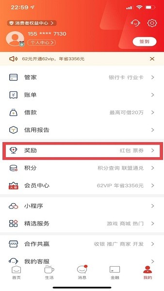 ②在我的-奖励-我的票券中查看获取到的优惠券