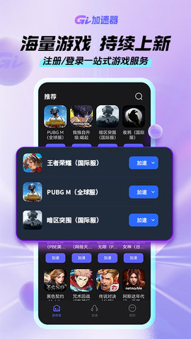 gi手游加速器官方正版是一款专注于移动端游戏网络优化的免费软件,通过智能路由、协议优化与多节点部署,为全球范围内的热门手机游戏提供低延迟、高稳定性的网络连接软件。其核心价值在于帮助跨越地域网络限制,有效解决因网络环境不佳导致的游戏卡顿、延迟过高及连接中断等问题,从而获得流畅、沉浸式的竞技与娱乐体验。