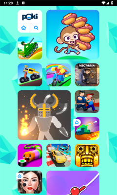 打开「Poki小游戏」手机版App,首页会展示大量精选小游戏,涵盖动作、休闲、益智、体育等多种类型。