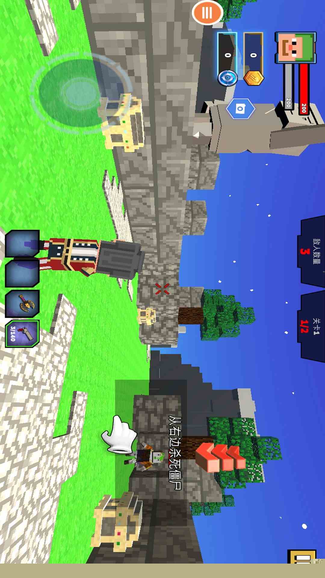 核心体验围绕生存与歼灭展开。需在有限的地图空间内移动,使用虚拟摇杆控制角色行进方向,点击屏幕特定区域进行瞄准与射击。面对从四面八方涌来的僵尸,保持移动并利用场景中的箱子、车辆等作为临时屏障至关重要。弹药与生命值补给品会随机刷新,需要规划路线进行拾取。