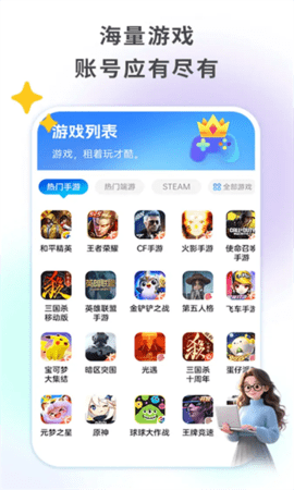 平台构建了一个涵盖主流端游与移动端游戏的庞大账号库,资源更新紧跟市场热点。