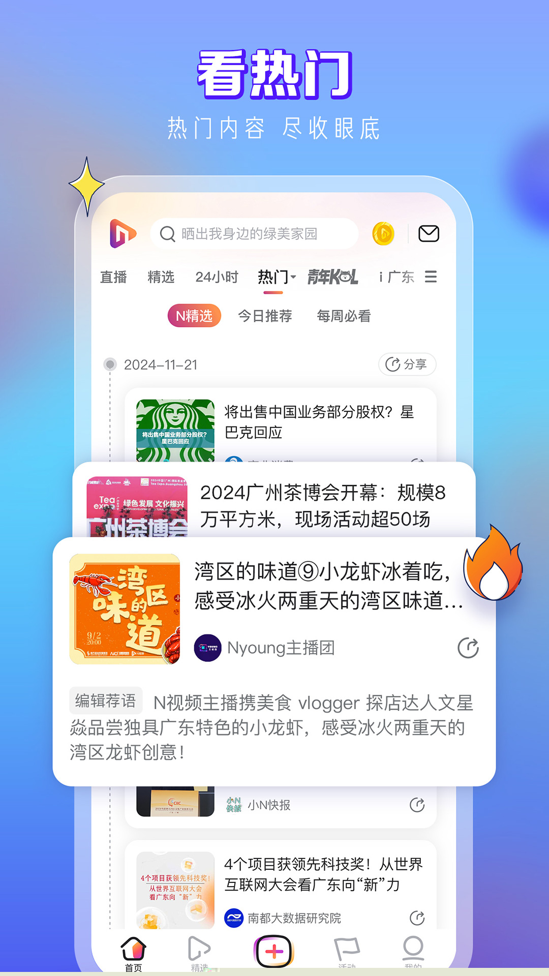 N视频是一款由南方报业传媒集团精心构建、南方都市报具体运作的移动端新媒体软件。其核心定位是成为视频化的广东信息发布窗口,主要面向年轻用户群体,内容上扎根广东及粤港澳大湾区,影响力向全国延伸。通过富有活力的内容表达与呈现形式,构建一个新颖的青年互动社区,并持续向广东省内具有公信力的视频资讯平台方向发展。