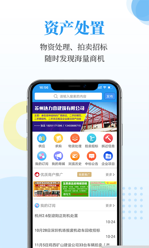 汇聚产业链中大宗物资的招标、拍卖与竞价信息,提供标准化信息展示与筛选服务,为再生资源回收、废旧物资处置等交易活动创造透明化渠道。