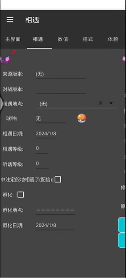 对宝可梦的修改是主要软件场景。点击任意宝可梦进入详细编辑器,界面划分为基本信息、个体值、努力值、技能、相遇详情等多个标签页。调整个体值时,软件会以颜色高亮提示数值范围;修改技能则需从该宝可梦可学的合法技能池中选择。利用顶部的遭遇数据库功能是快速生成合法宝可梦的捷径:设置好目标物种、游戏版本、遭遇地点与等级后,一键即可生成并替换当前选中位置的数据。