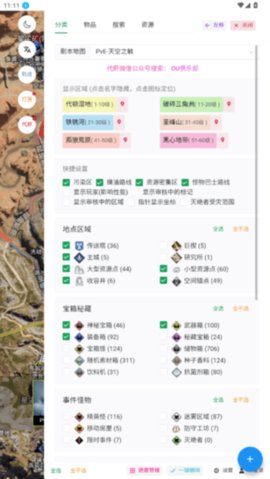 支持在破碎三角洲、垩峰山、孤狼荒原等不同地貌间瞬间切换,针对性地查询区域特有物产分布。