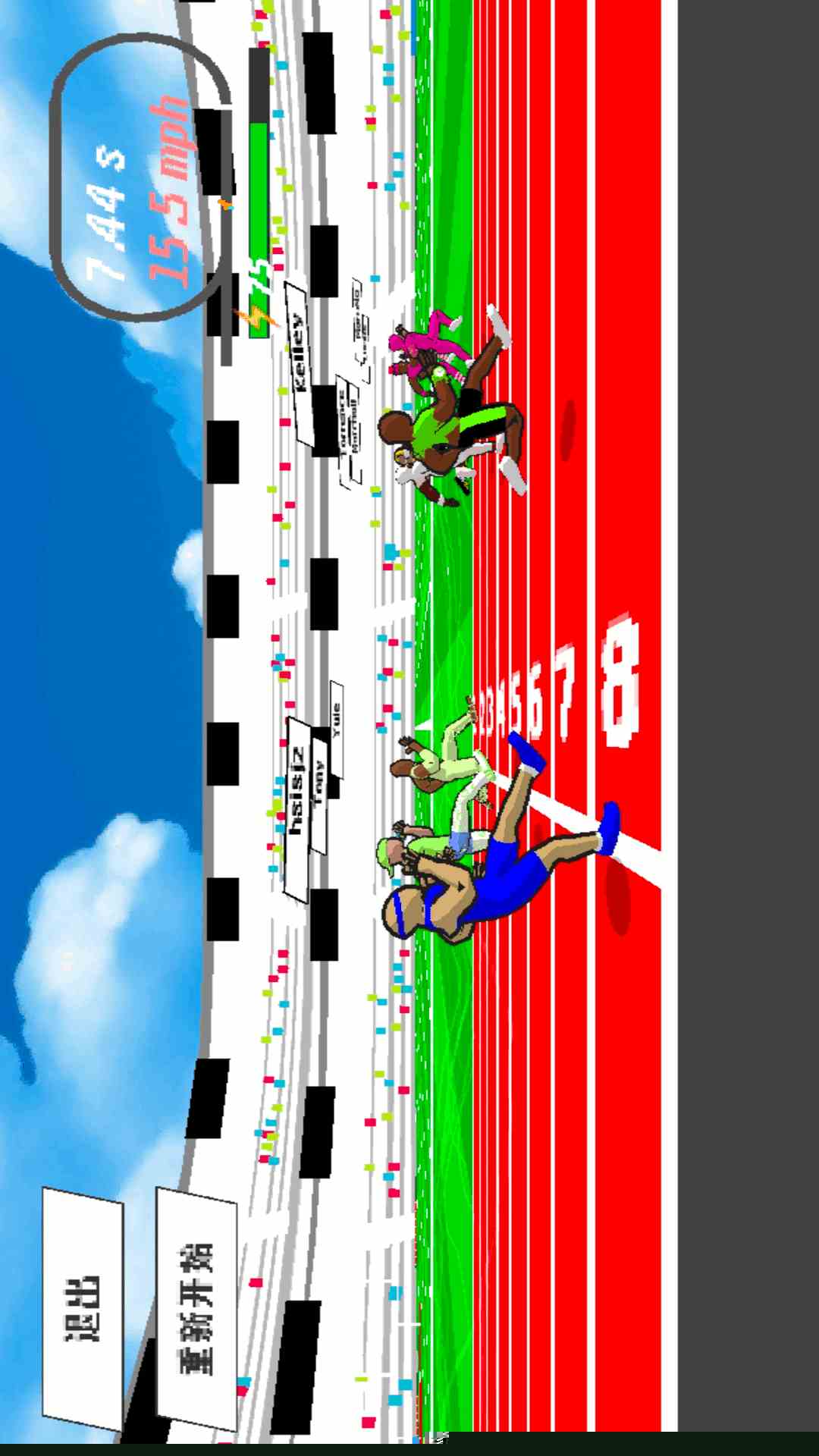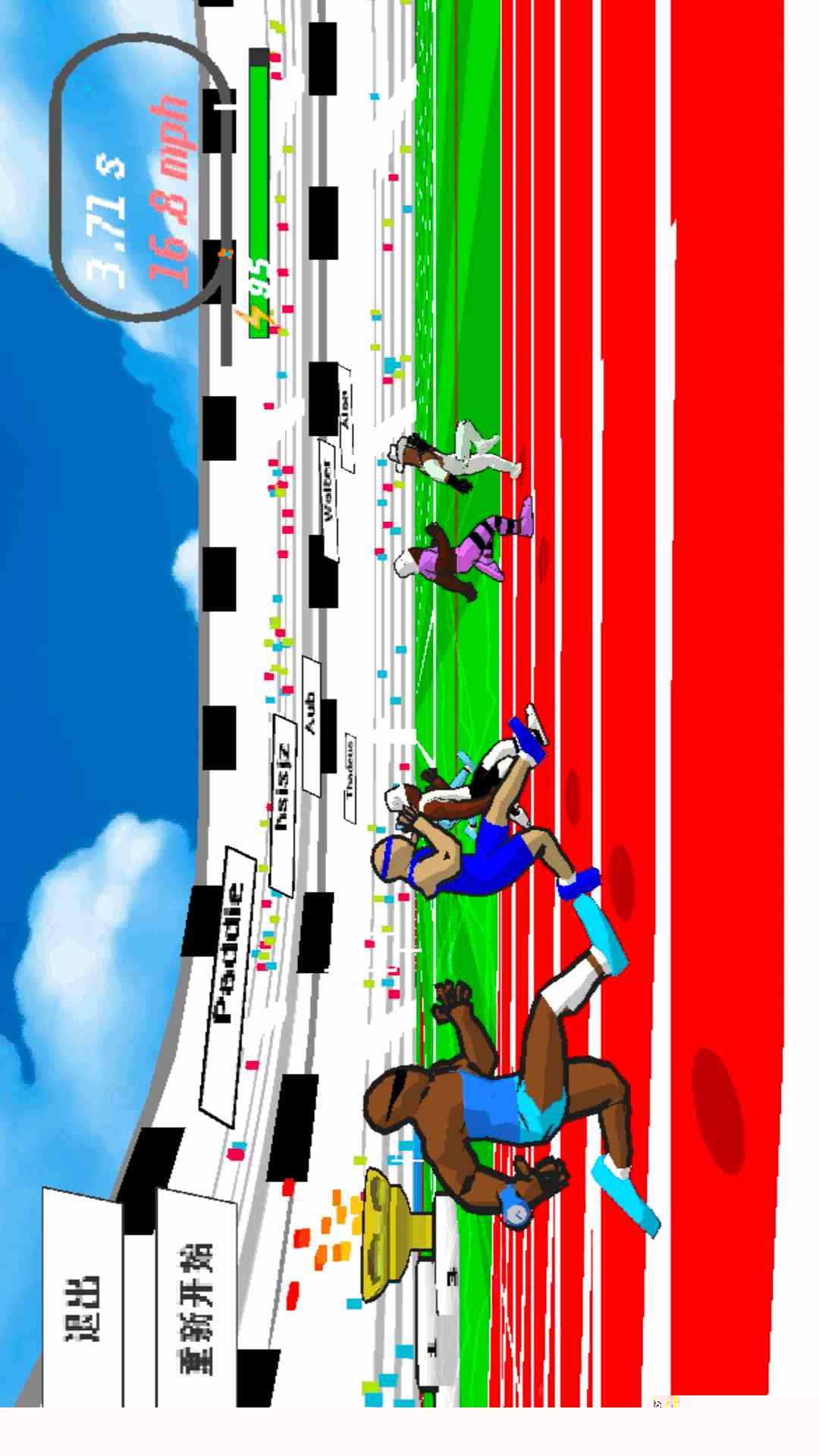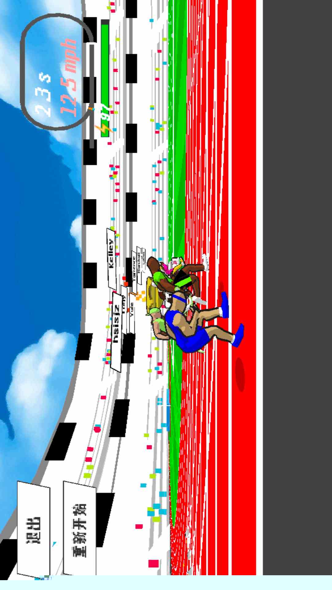 角色动作流畅自然,碰撞与加速特效表现力十足,配合富有节奏感的背景音乐,共同营造出沉浸感极强的竞速氛围。