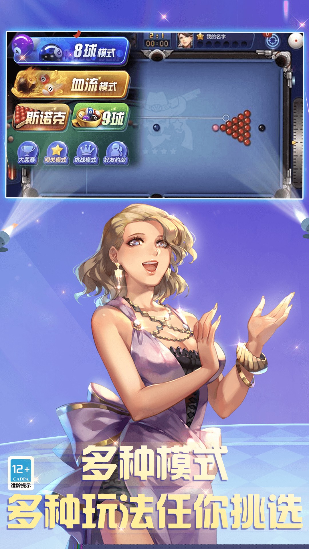 提供大量可自定义的球杆、球桌、特效与角色外观,允许打造独一无二的个人竞技形象。