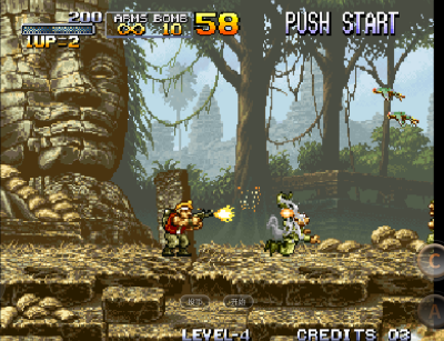 精准复现了街机摇杆与按键的操控逻辑,跳跃、射击、投弹等动作响应迅捷,手感流畅扎实。