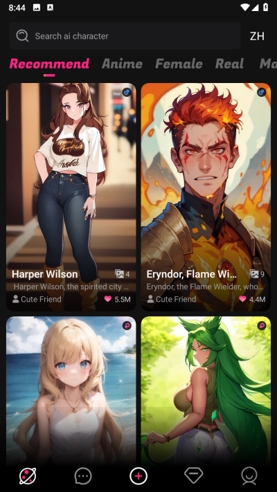 在本站获取软件后,启动时可选择快速体验或注册账号。完成基础的性别与名称设置后,即可进入角色大厅,从众多AI角色中选择一个,点击即可开启对话。