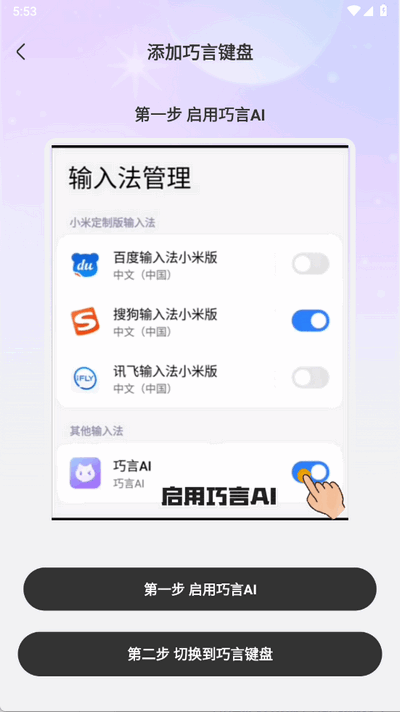 在本站获取安装包后,启动软件并完成初始性别选择与兴趣标签配置,随后按照引导启用系统输入法中的对应键盘即可。