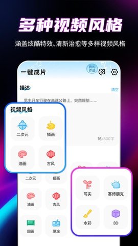 一键成片AI是一款集成了前沿深度学习算法的智能内容生成软件,通过理解用户输入的文本或图像素材,自动完成从创意构思到视觉成品的全流程制作。软件降低专业视频与图像创作的技术门槛,让普通用户也能高效产出具备商业级水准的多元化视觉内容,显著提升个人与团队的创意表达效率。