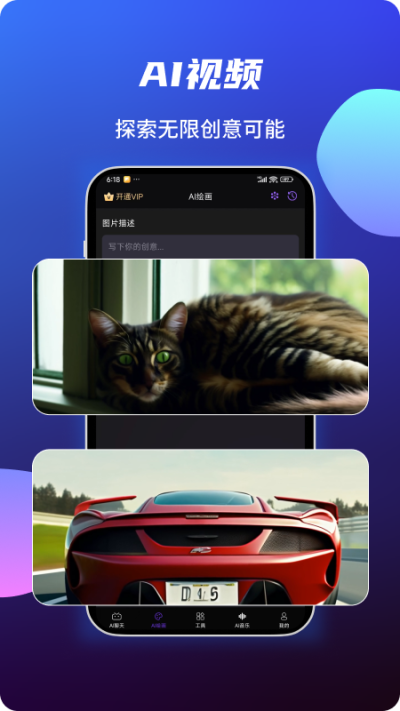 进入绘画板块,文本框输入描述内容,添加风格,点击生成