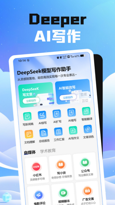 DeeperAI是一款基于先进人工智能技术开发的综合性内容创作辅助软件,通过深度学习和自然语言处理能力,协助用户高效完成从构思、撰写到优化的全流程写作任务。其核心在于理解用户意图,并生成符合语境、风格多样的高质量文本,适用于广泛的个人与专业创作场景。