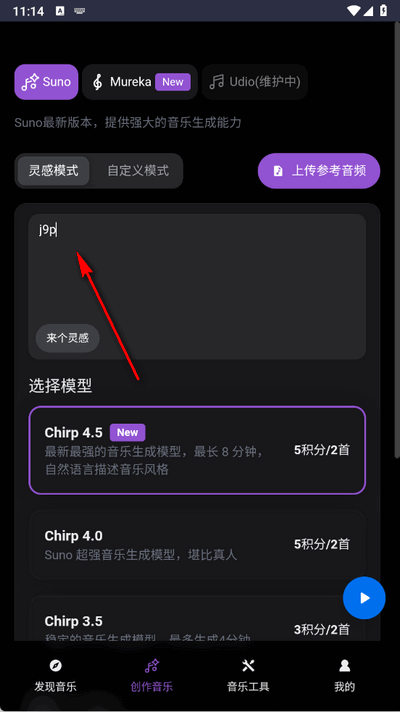 启动软件后,在主界面找到创作入口,在指定的文本框中尽可能具体地描述您想要的音乐(包括风格、情绪、乐器、速度等),提交生成指令即可。
