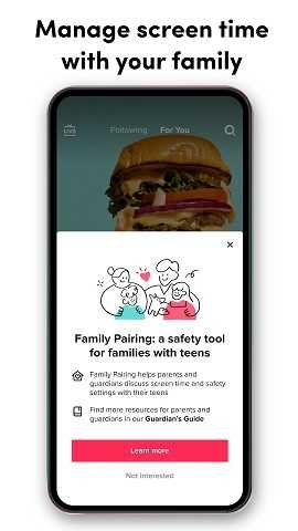 软件内设有家庭安全配对功能。家长可在自己设备上启用此功能,通过二维码与子女的账户绑定,从而远程管理屏幕使用时间、限制内容类型以及控制私信功能,营造更健康的使用环境。