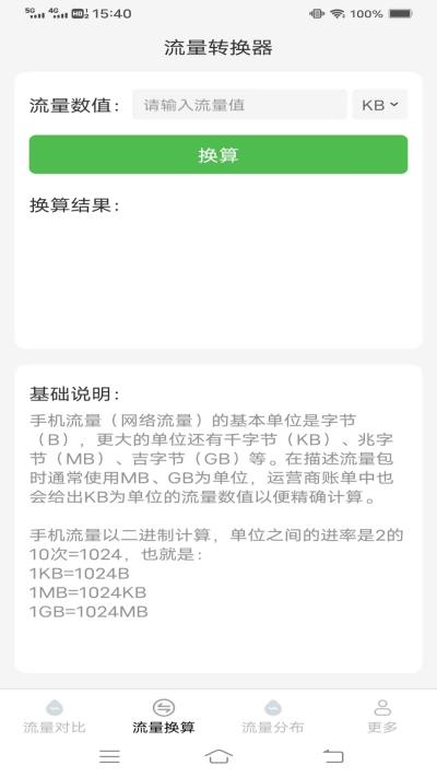 内置便捷的流量单位转换工具,输入任意数值即可在GB、MB、KB等单位间快速换算,简化流量计算过程。