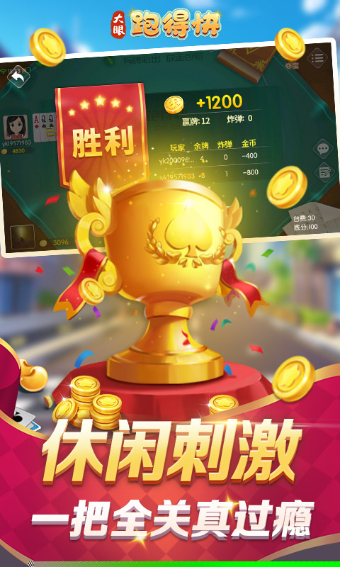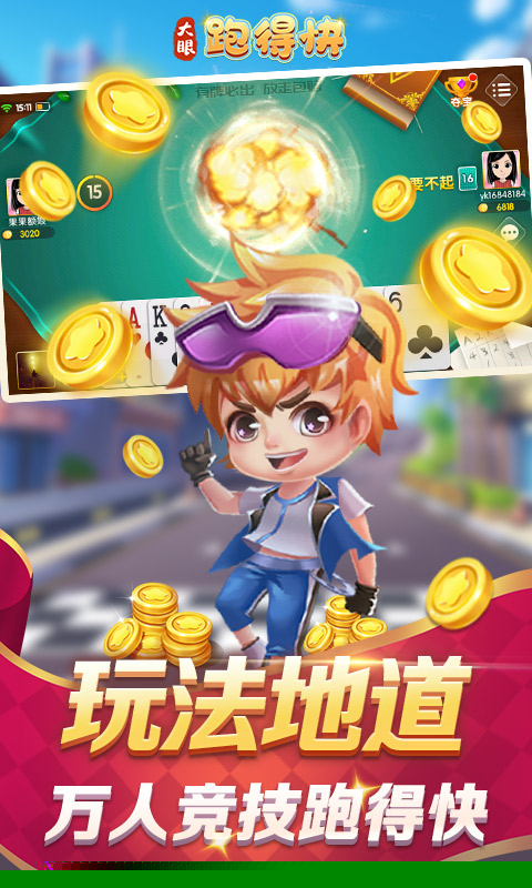 大眼跑得快是一款融合了湖南跑得快、争上游与锄大地精髓的三人扑克竞技游戏,需运用策略与技巧,以最快速度将手牌全部打出,争夺上游席位,体验紧张刺激的牌局对决与智力博弈。