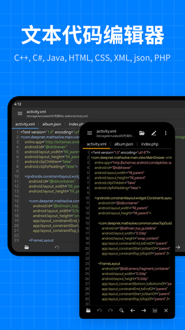 文本编辑器代码编辑是一款适用于安卓移动设备的专业级文本与源代码处理软件,采用极简主义设计理念,在保证核心编辑能力强大的确保了运行效率与系统资源的低消耗。软件全面支持从日常笔记记录到复杂软件开发的编辑需求,集成了智能语法高亮、多编码格式处理、深度历史版本管理以及高度可定制的编辑环境,为开发者、写作者及任何需要高效文本处理能力的用户,提供一个随时随地可用的移动工作站。