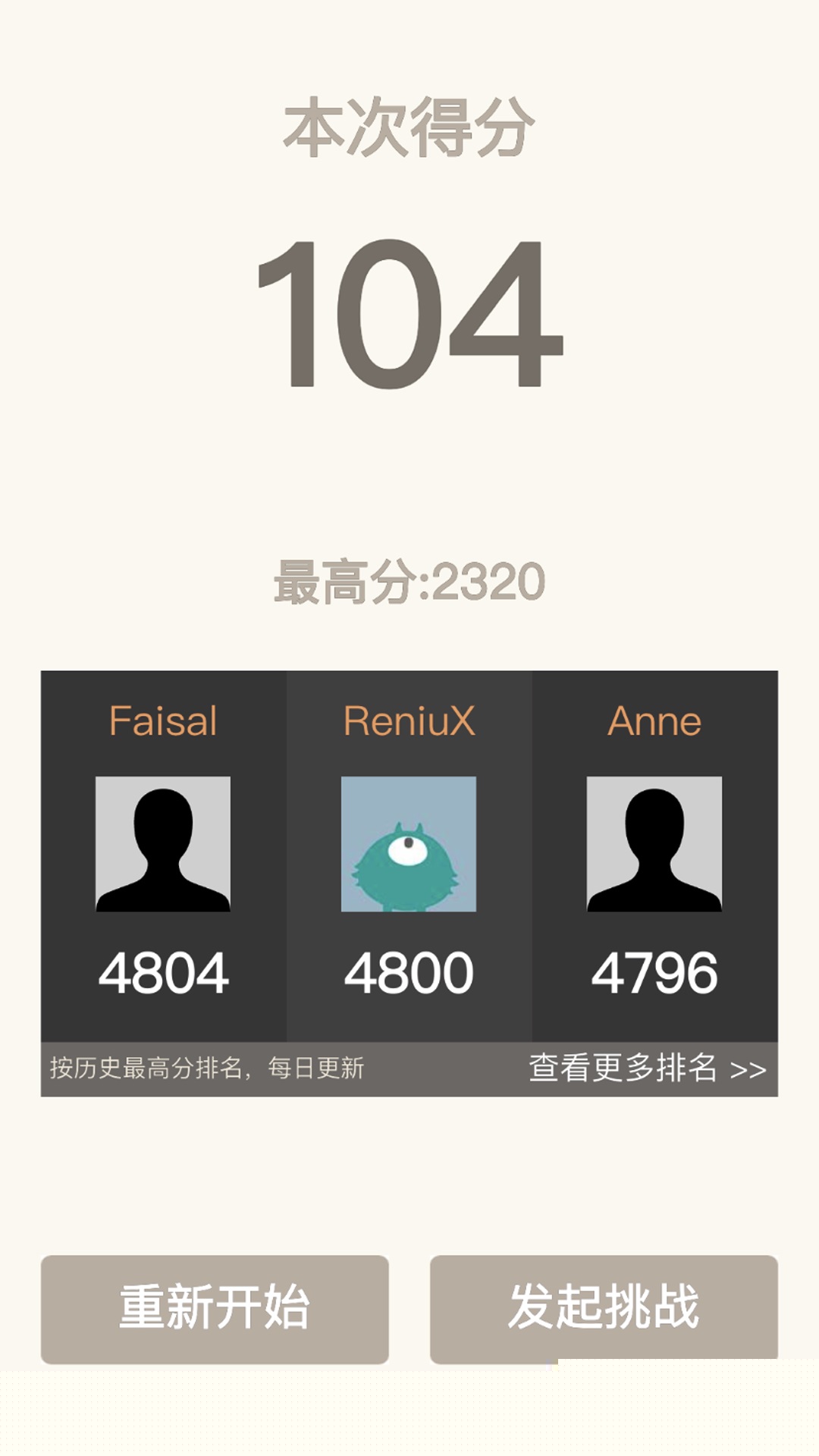 随机性引入变数 每回合随机出现的新方块为固定策略带来不确定性,要求动态调整应对方案。 分数驱动竞争 全球排行榜机制激发超越自我的欲望,每一次高分都是对策略优化的肯定。 学习曲线平缓 入门门槛极低,但精通难度陡增,适合各类用户群体轻松上手并深入探索。 参与者的首要目标是维持棋盘角落,尤其是右下角,放置当前最大数值的方块。这一策略的核心在于构建一个稳定的锚点,将高价值数字固定于角落,从而腾出主要活动区域进行其他方块的合并与整理。通过有意识地控制滑动方向,引导新生成的数字方块向锚点方向有序流动,能够有效避免高价值方块被困于棋盘中央,为后续的大规模合并创造先决条件。 操作层面,需养成定向滑动的习惯。优先保持向一个主要方向(如下或右)的合并趋势,谨慎使用反向滑动(如上或左)。反向移动仅应在清理障碍或调整关键方块位置时使用。每一次滑动前,都应预判新数字方块可能出现的位置及其对整体格局的影响。培养走一步看三步的思维模式,评估当前操作是能打开合并空间,还是会导致关键区域被意外堵塞。 当棋盘空间逐渐紧张时,风险管理变得至关重要。切忌盲目合并所有可见的相同数字,有时需要暂时保留一些低数值方块作为缓冲或桥梁,以连接更重要的合并链条。时刻保持至少一条移动路径的畅通是避免突然结束的关键。通过本站获取体验,可以反复实践上述策略,从失败中分析棋盘堵塞的原因,逐步掌握空间规划与时机把握的精髓,从而稳步提升个人最高分记录。 从本质上看,数字拼接作品构建了一个简约而深邃的决策环境。其魅力并非来源于复杂的画面或叙事,而是根植于简单规则产生复杂行为的设计哲学。体验过程如同进行一场安静的头脑体操,每一次滑动都是对空间几何理解与概率评估的即时软件。持续的挑战促使思维保持活跃状态,在尝试突破个人记录的过程中,能显著感受到规划能力与耐心程度的提升。整体而言,成功地将抽象的数学逻辑转化为具象且富有吸引力的交互形式,提供了经久不衰的智力愉悦感,成为休闲时间进行思维训练的绝佳选择。游戏攻略