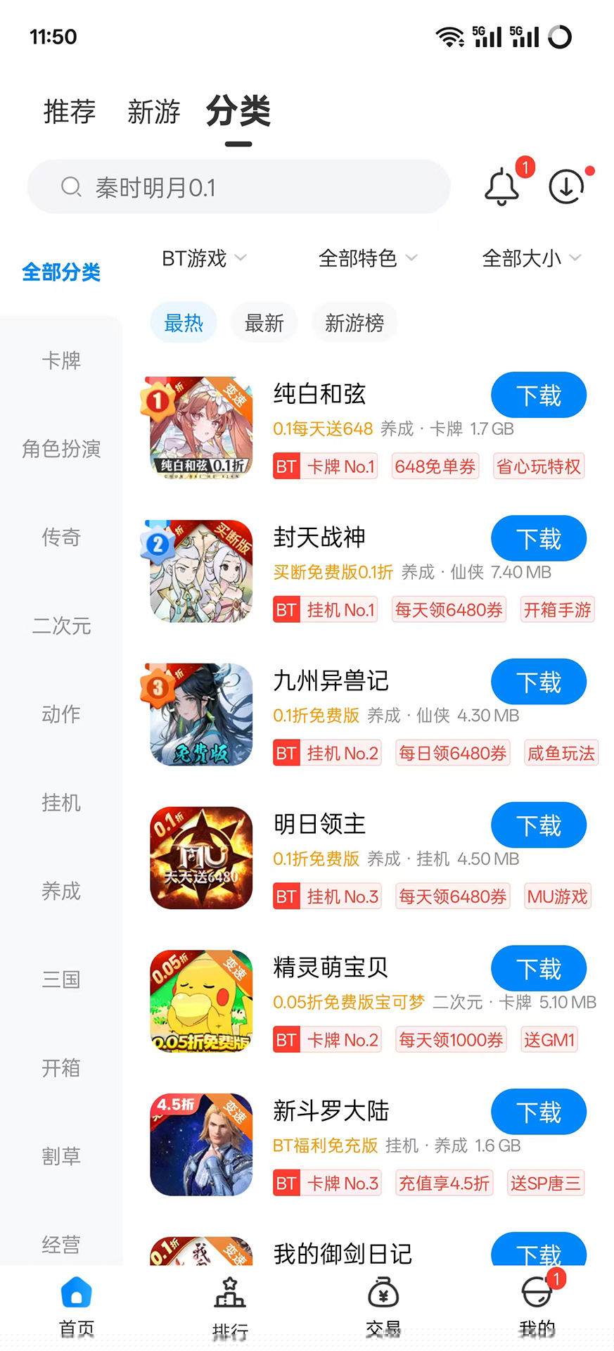 bt是一款专注于提供海量折扣与福利型移动游戏的聚合平台,汇集了包括0.1折、0.05折在内的多种高性价比游戏资源,为打造一个集游戏获取、社区交流与深度攻略于一体的综合性娱乐空间。