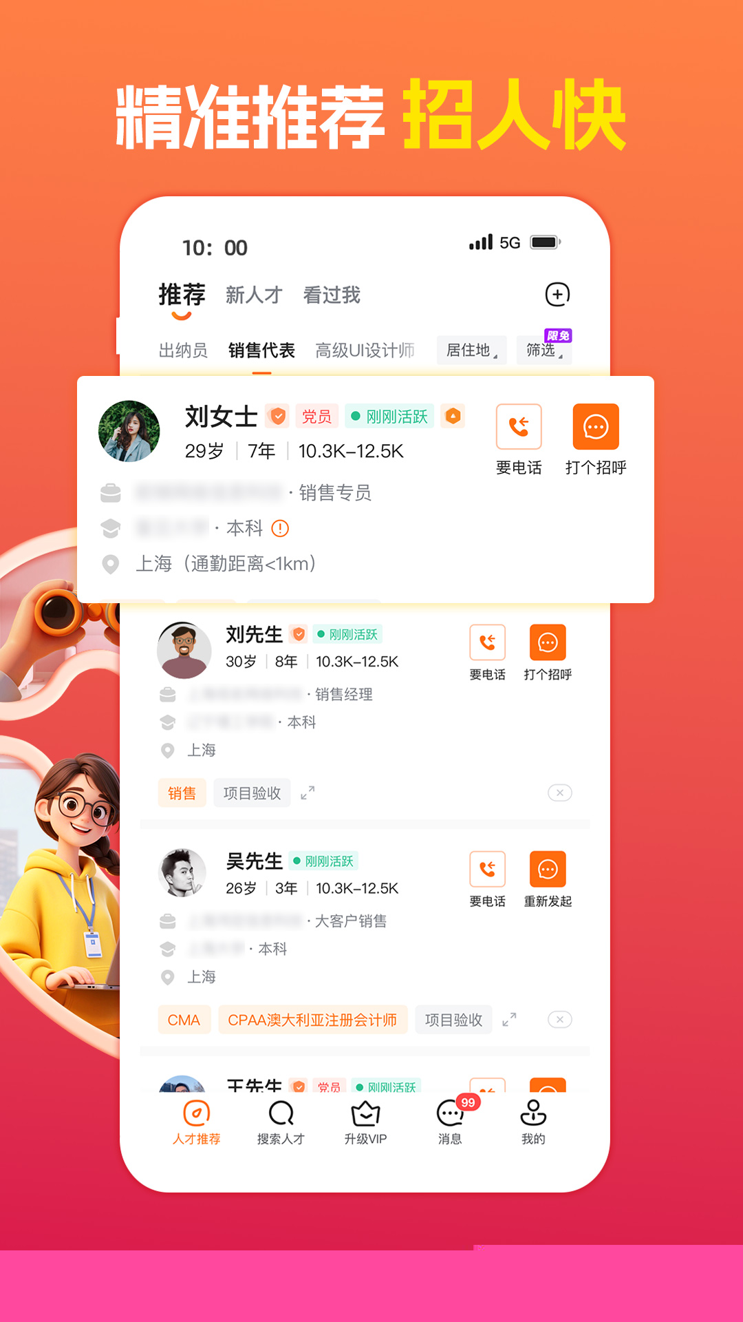 招聘方可利用多维筛选条件与标签,从海量简历库中快速定位符合要求的候选人,并支持一键发起面试邀约,大幅提升招聘效率。