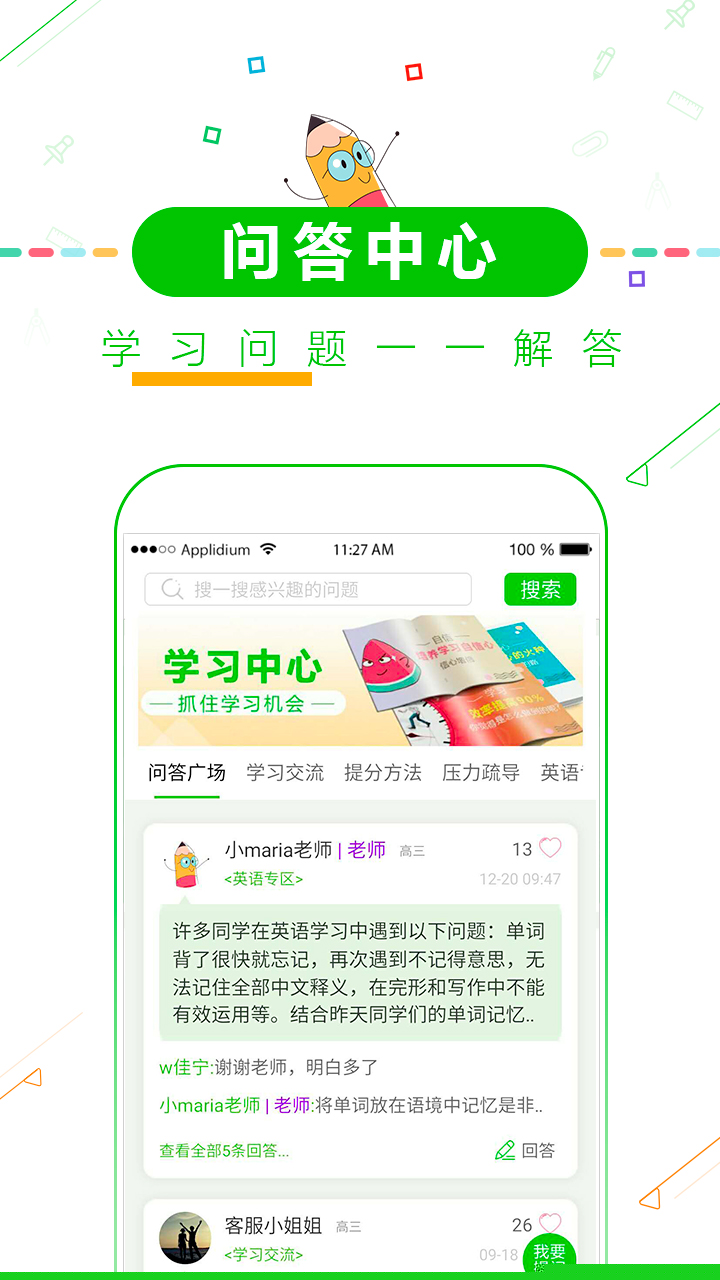 针对数学、物理、化学等理科难点,以及文史科目的背诵技巧,设立问答专区,方便用户快速获取学霸的解题思路与方法。