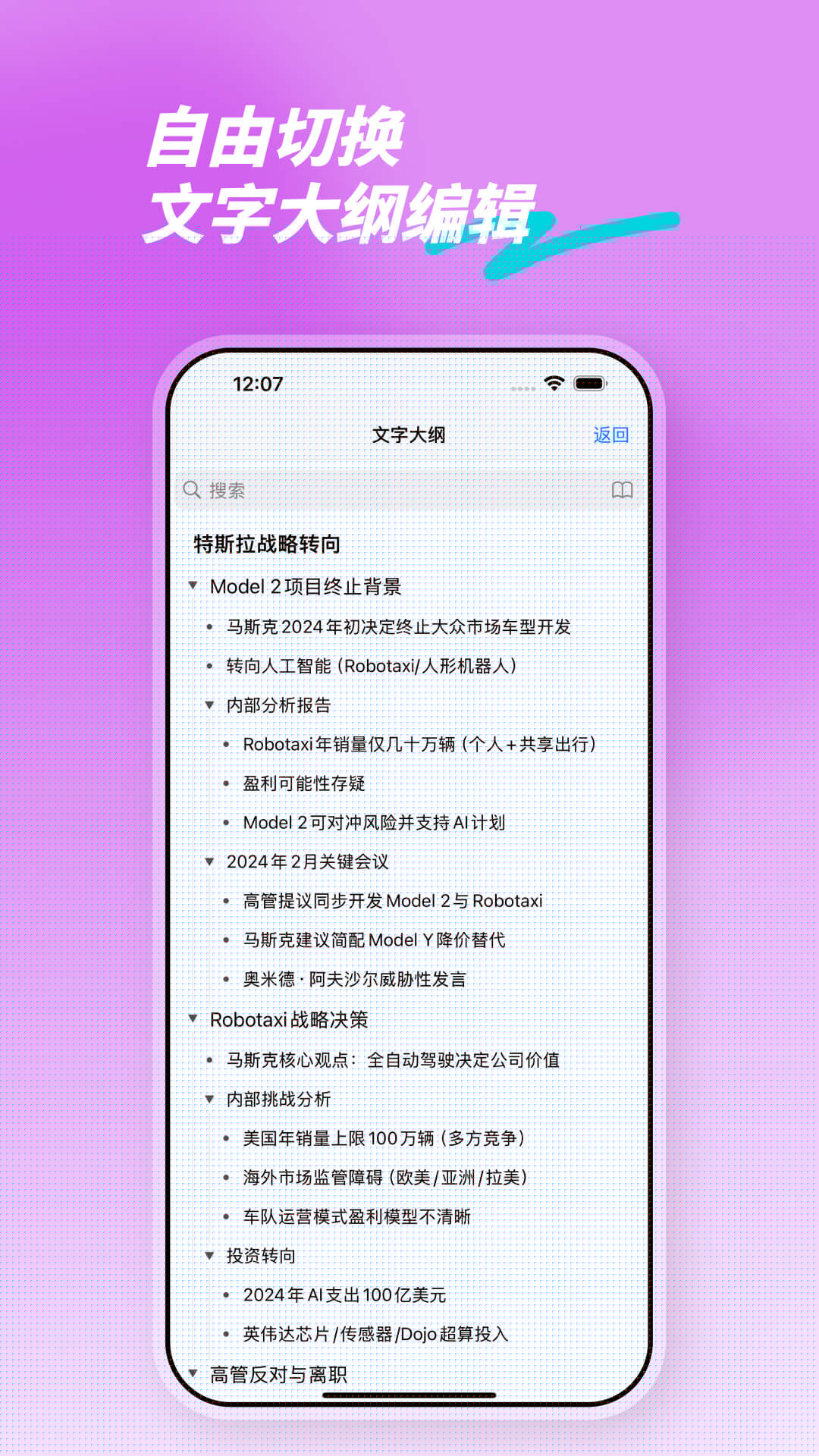 界面布局清晰,核心操作高度聚焦,通过点击与长按等基础手势即可完成分支的创建、编辑与组织,大幅降低学习成本,让用户能迅速将注意力集中于内容构思本身。