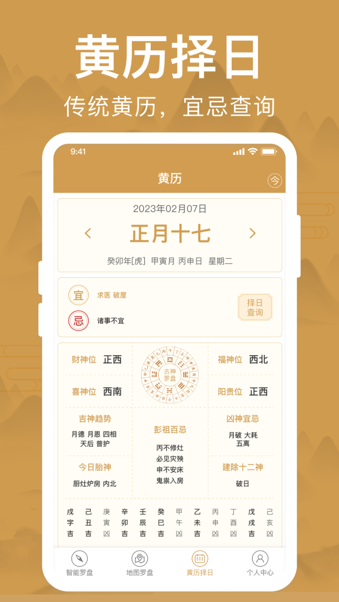 内置权威的农历、干支历及黄历宜忌数据库,提供精准的万年历查询与吉日选择功能,便于将方位分析与时间维度上的天时相结合,进行综合择吉。