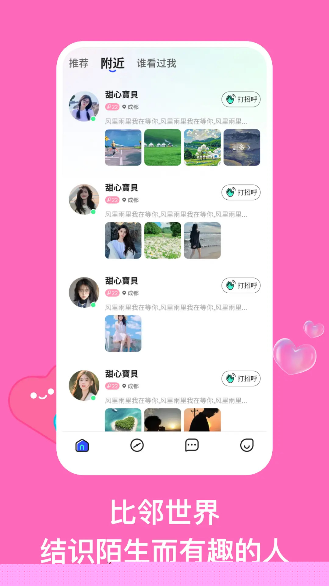 用户可通过发布语音动态或文字状态分享生活,并结合可自定义的兴趣标签,系统能据此进行更精准的社交推荐。