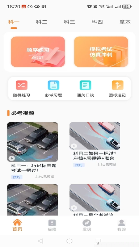 构建了从顺序练习、专项突破到全真模拟的渐进式学习路径,覆盖法规、场地、道路驾驶等全部考核维度,实现知识点的无死角巩固。
