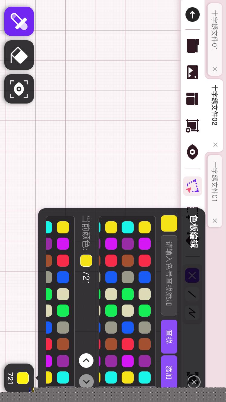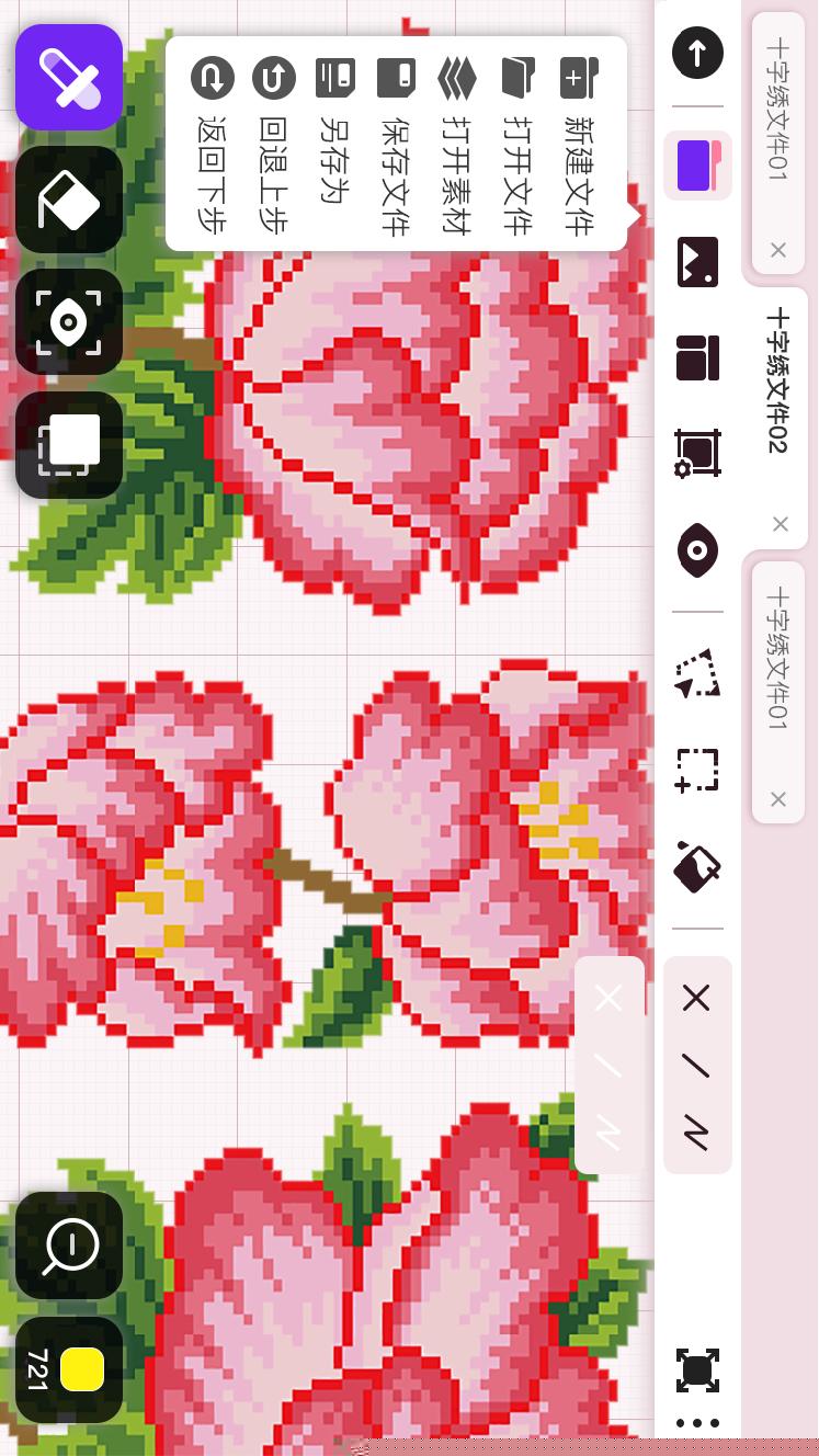 允许自由设定绣布尺寸、格数及织物类型,并可直接在格点图上进行像素级编辑,实现创作过程的完全掌控。