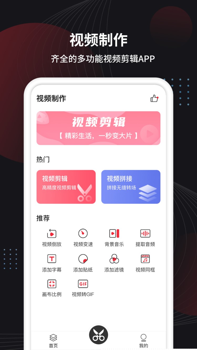 制作视频是一款功能全面的视频编辑工具,能够满足从基础剪辑到创意加工的全流程需求。集成了视频的裁剪、合并、分割、速度调整以及丰富的视觉增强效果,如多样化的滤镜、动态贴纸和字幕编辑,为用户提供一个直观且强大的创作环境,帮助用户轻松将想法转化为生动的视频作品。