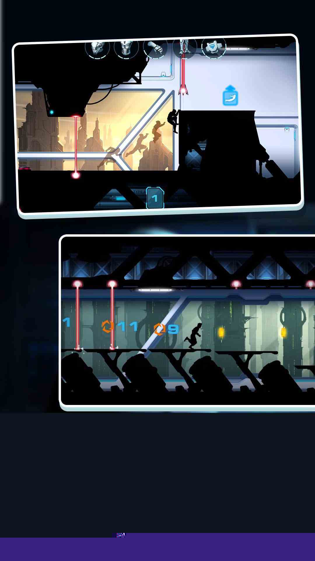 核心目标是引领角色安全抵达每一关卡的终点。整个过程是一场与时间和监控系统的赛跑。主要交互方式为滑动与点击:在平地或遇到可跨越障碍时向上滑动执行跳跃;临近墙壁时向墙壁方向滑动可实现蹬墙跑或反弹跳;遇到低矮障碍向下滑动则进行滑铲;点击屏幕可使角色在栏杆、屋檐等支点进行摆荡。这些基础操作是应对复杂地形的根本。