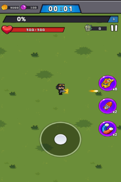 核心目标是在有限的空间内尽可能长久地生存下去。通过虚拟摇杆控制角色移动,自动攻击系统会锁定最近的目标进行射击。首要任务是熟悉基础操作:保持移动是生存的第一法则,切忌在原地停留过久;射击虽为自动,但通过走位可以牵引敌人聚集,为范围攻击创造机会。