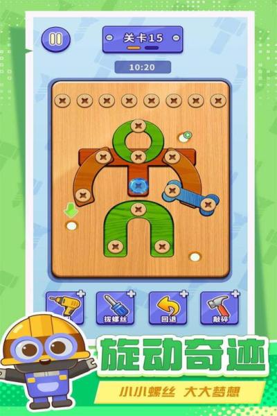 打螺丝拧不住拔钉子是一款融合了物理模拟与逻辑解谜元素的休闲益智作品,将化身技艺高超的工匠,面对由螺丝与木板构成的精巧结构,目标是通过精准操作逐一拆除固定件,最终让所有组件安全分离。关卡设计巧妙多变,考验空间想象与顺序规划,更将真实的力学原理融入为带来兼具挑战性与成就感的独特体验。
