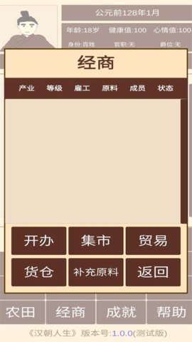 汉朝人生是一款以两汉历史为背景的文字模拟养成类作品,将扮演一名生于西汉初年的普通百姓,通过一系列人生抉择,体验从布衣平民到朝堂重臣乃至一方诸侯的完整历程。游戏深度还原了汉代的社会风貌、官职体系与经济制度,其核心玩法在于策略规划与角色成长,每一次选择都可能开启截然不同的命运分支,带来极具沉浸感的历史穿越体验。
