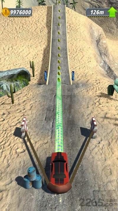 赛车腾空后,进入飞行操控阶段。此时可以通过左右滑动屏幕来调整车身姿态,以微调落点。空中阶段是收集悬浮金币、完成指定特技动作(如空中旋转)的关键时机。落地瞬间的稳定性至关重要,若角度不佳可能导致打滑甚至翻车,损失宝贵时间。在落地前调整车身至与赛道方向平行,能保证获得流畅的后续加速。