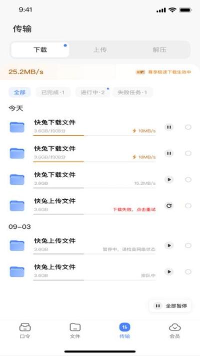 支持创建HTTP、FTP、磁力链等多种协议的离线下载任务。任务添加后,将由云端服务器完成下载并转存至您的网盘,您可直接在线查看或取回至本地,节省设备资源与时间。